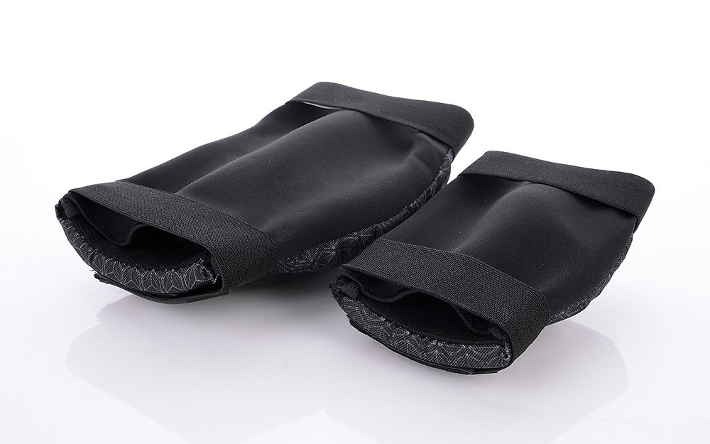 Knie- und Ellbogenschützer: Das starke Außenpolster aus robustem Kunststoff schützt die Gelenke bei einem Aufprall gut. Sie werden mit Hilfe von 3 Paaren großer Nieten am Textilteil befestigt. Der starke Innenschaum absorbiert Stöße intensiv und zuverlässig und reduziert Verletzungen. Die innere Aussparung im Schaumverband verhindert, dass sich der Protektor von selbst bewegt, sorgt für die richtige Position und damit für den größten Schutz. Der textile Teil des Protektors besteht aus zwei Teilen: Der erste Teil ist mit einem Gummiband an der Extremität über dem Gelenk befestigt und bewegt sich mit, der zweite Teil des Protektors wird direkt auf das Gelenk gelegt und schützt es in diesem Fall eines Aufpralls.